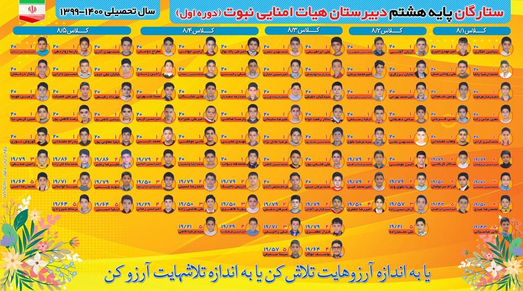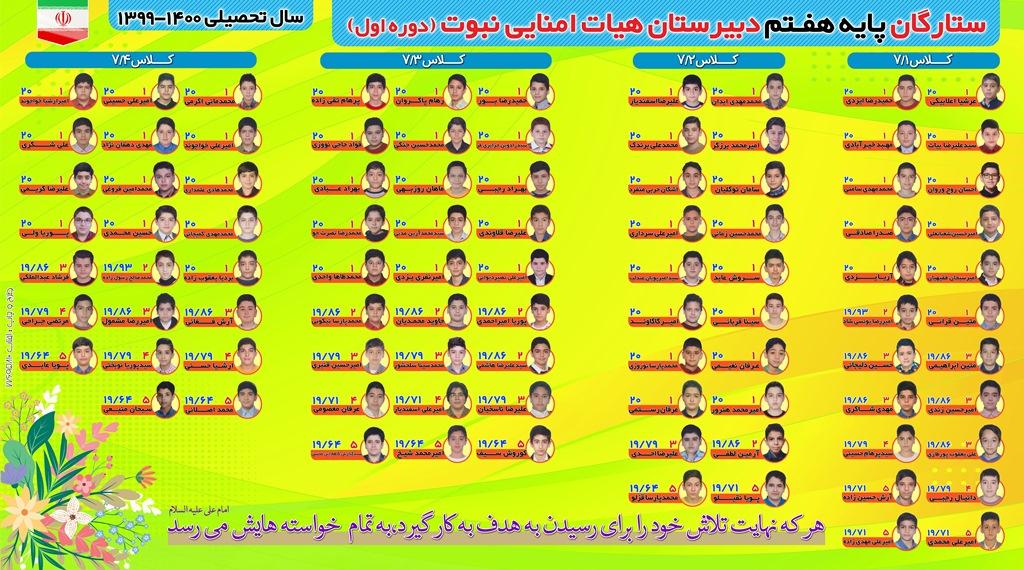 ستارگان پایه هفتم وهشتم دبیرستان نبوت در سال تحصیلی 1400-1399